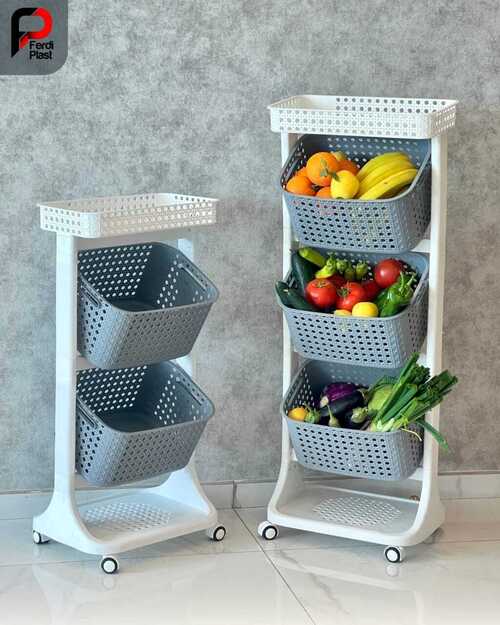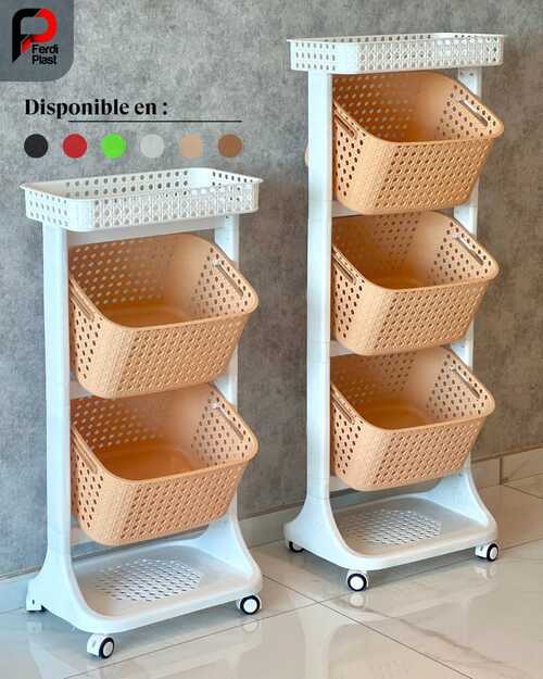 Découvrez notre chariot de rangement multifonctionnel, idéal pour optimiser l’espace dans votre cuisine ou votre cellier. Grâce à ses paniers ajourés et mobiles, il assure une excellente ventilation de vos fruits et légumes tout en facilitant leur accessibilité.